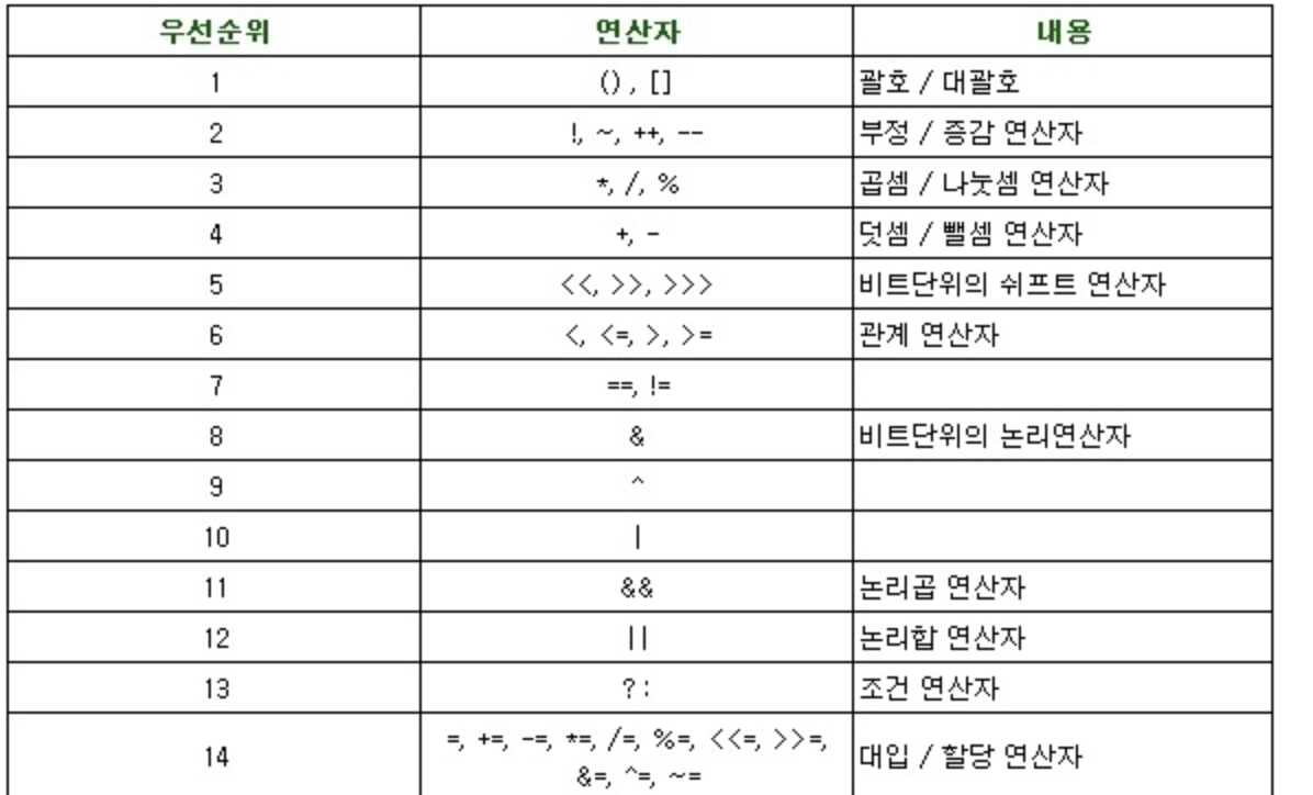 연산자 : 주어진 식에서 사용되는 기호(+, -, /, %)등