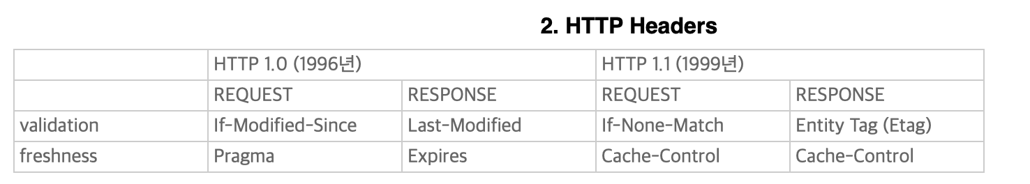 따라서 현재 사용되고 있는 HTTP1.1버전은 캐쉬 만료를 request,response 객체에 헤더 값 cache-control을 통해 관리할 수 있다는 뜻입니다.