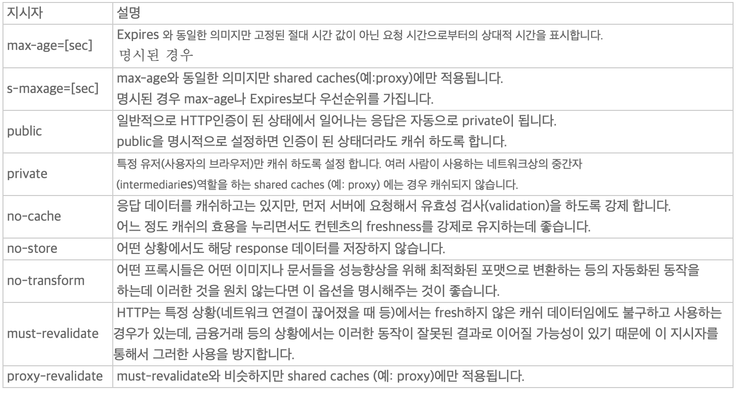 그렇다면 Cache_Control에 어떤 값을 설정할 수 있는지 알아볼까요?