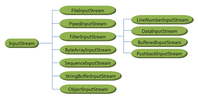 InputStream을 상속받는 stream 클래스들
