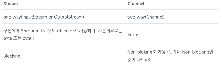 - JAVA 1.4부터 NIO(NEW I/O)로 Non blocking처리가 가능한데 여기선 채널을 이용한다.