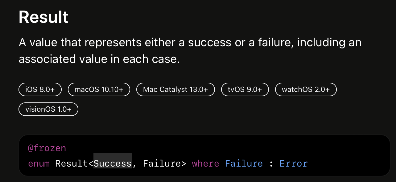 위와 같이 enum이고 해당 case에는 success(Success)로 선언되어 있어 Success에 Future Output을 전달하면 내부적으로 처리되는 로직인 것을 추측할 수 있습니다.