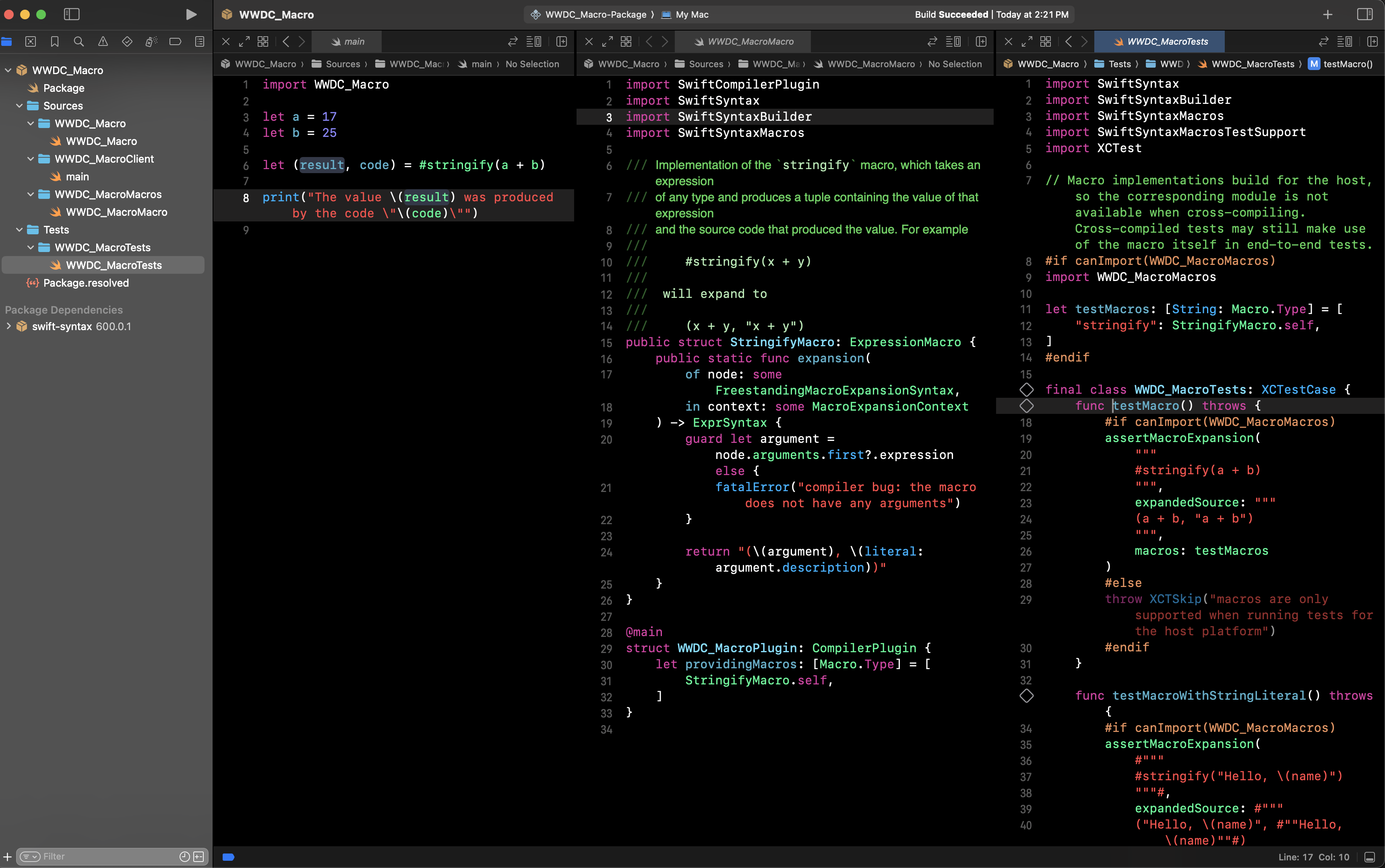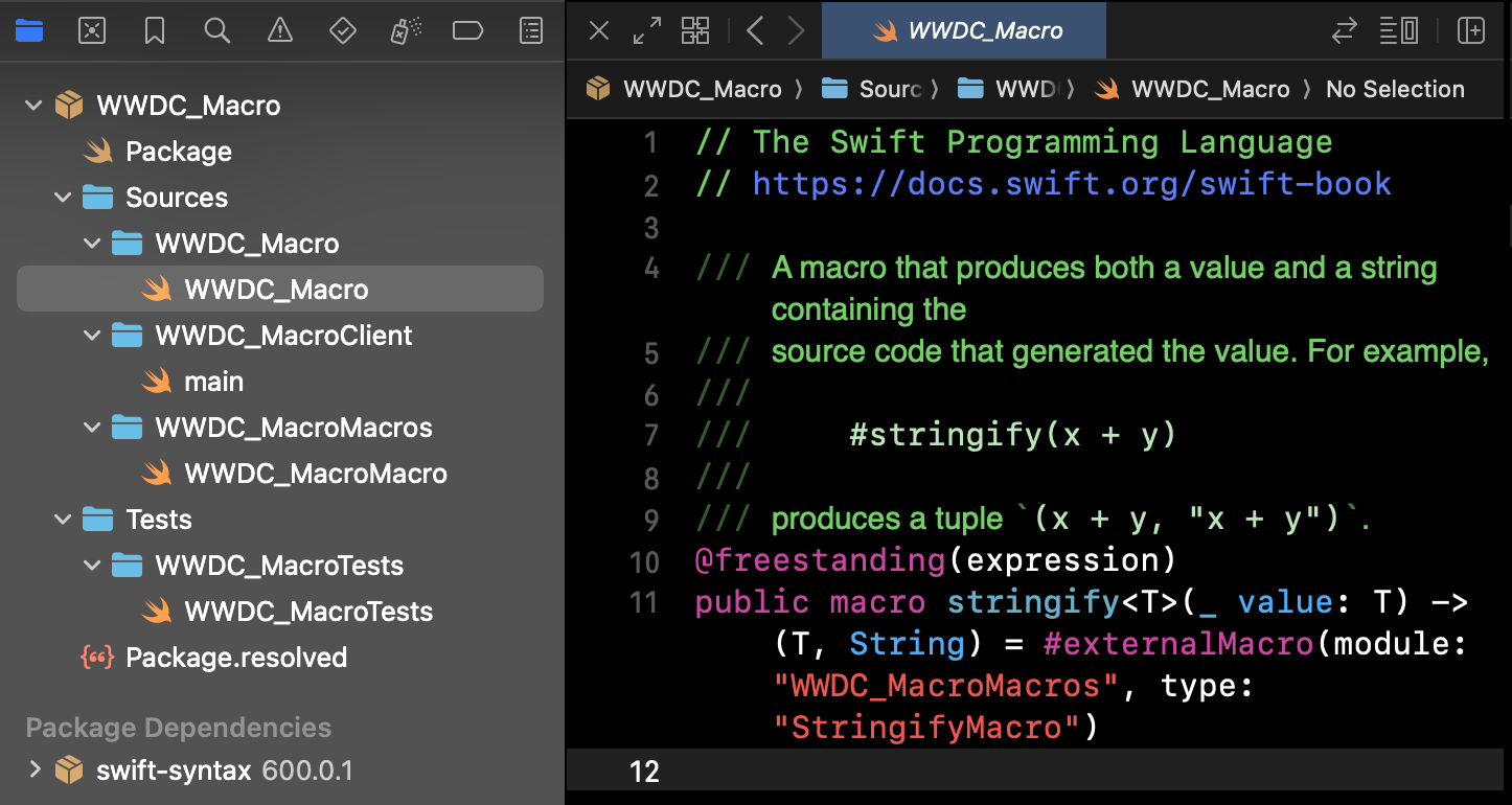 @main struct WWDC_MacroPlugin: CompilerPlugin { let providingMacros: [Macro.Type] = [ StringifyMacro.self, SlopeSubsetMacro.self ] }- 플러그인 메커니즘