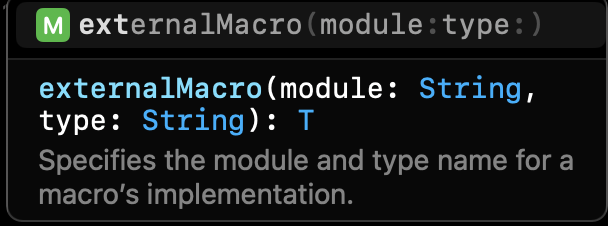 stringify표현에 사용할 매크로 구현체가 있는 모듈을 #externalMacro로 상세한다.