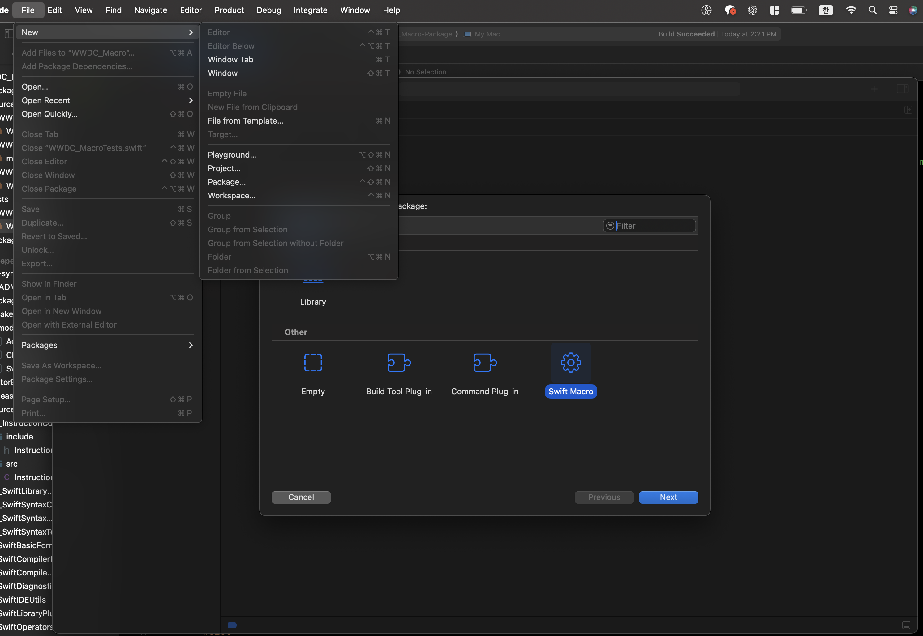Xcode -> File -> New -> Package 선택 시 Swift macro가 있습니다.