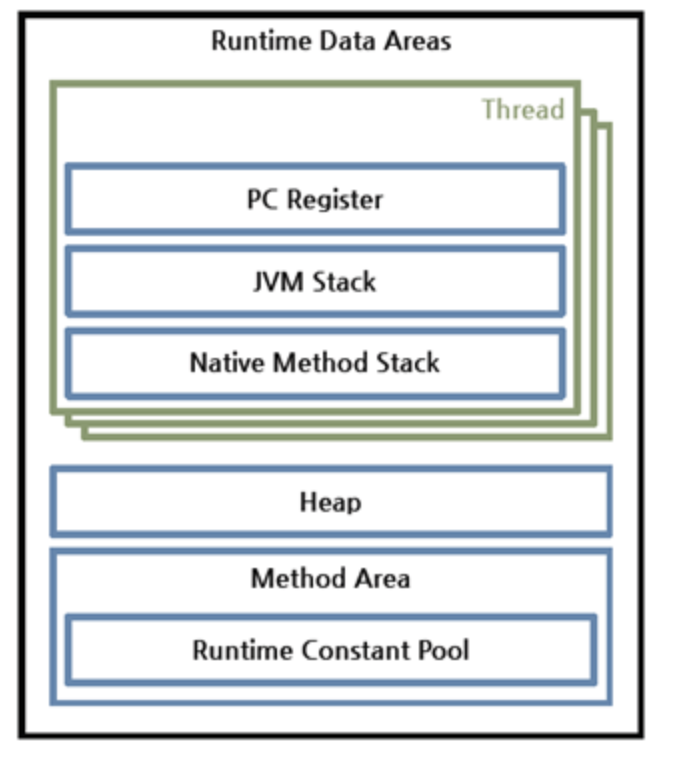 Runtime data area : 이 단계를 거치면 OS로 부터 메모리를 할당 받는다.