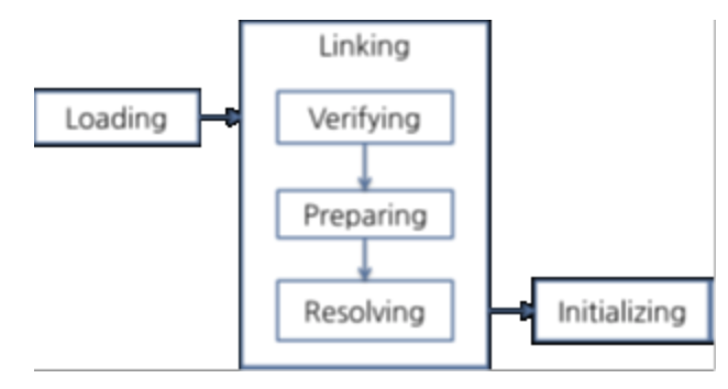 준비 : 클래스가 필요로 하는 메모리를 할당, 클래스에 정의된 필드, 메서드, 인터페이스들을 나타내는 데이터 구조를 준비.