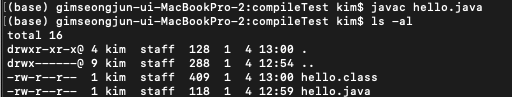 터미널 창에서 javac 명령을 통해 java 파일을 컴파일 할 수 있다.
